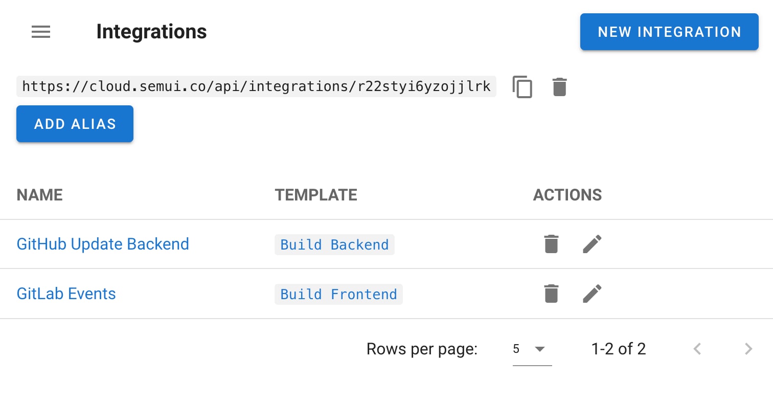 Integrations allow establishing interaction between Semaphore and external services, such as GitHub and GitLab.