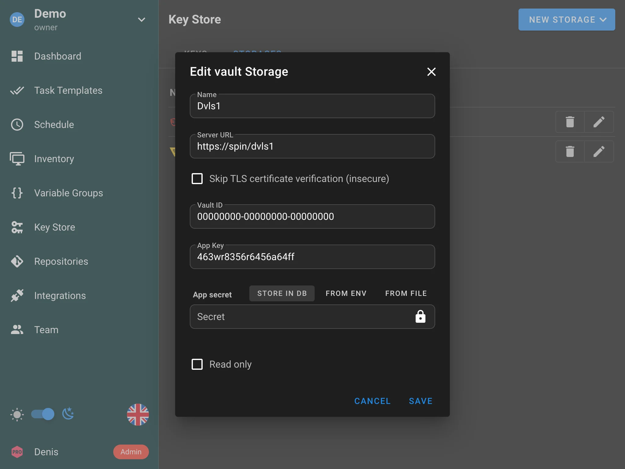 Semaphore UI supports Devolutions Server as a storage for secrets.