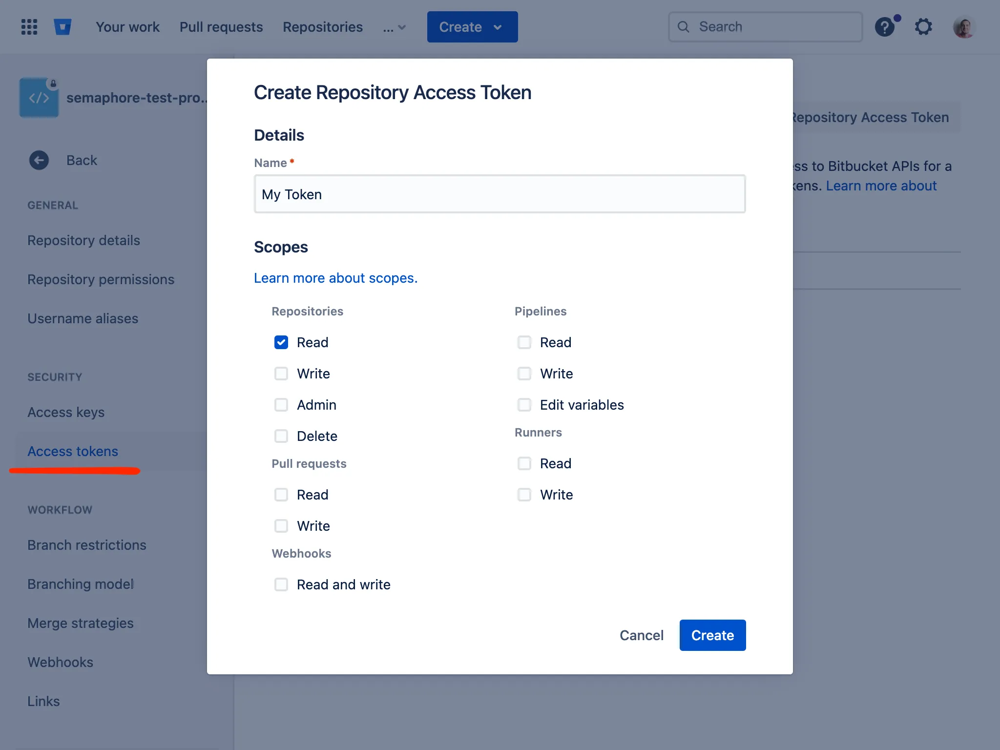 First, you need to create an Access Token for your Bitbucket repository with read access permissions.
